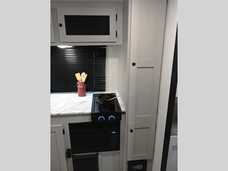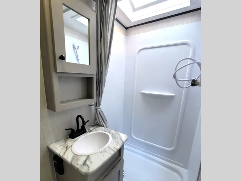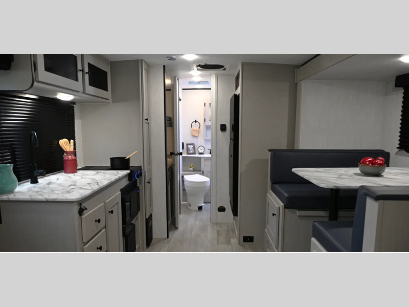Sleeps 3 Slides 1 Length 22 ft 7 in Ext Width 7 ft 6 in Ext Height 10 ft 2 in Hitch Weight 461 lbs GVWR 4700 lbs Dry Weight 3670 lbs Cargo Capacity 1030 lbs Fresh Water Capacity 52 gals Grey Water Capacity 35 gals Black Water Capacity 35 gals Available Beds Queen Refrigerator Type 12V Refrigerator Size 8 cu ft Cooktop Burners 2 Number of Awnings 1 LP Tank Capacity 20 lbs Water Heater Type Tankless AC BTU 15000 btu Awning Info 15' Power w/LED Lights Axle Count 1 Number of LP Tanks 2 Shower Type Standard Electrical Service 55 amp Similar Floorplans