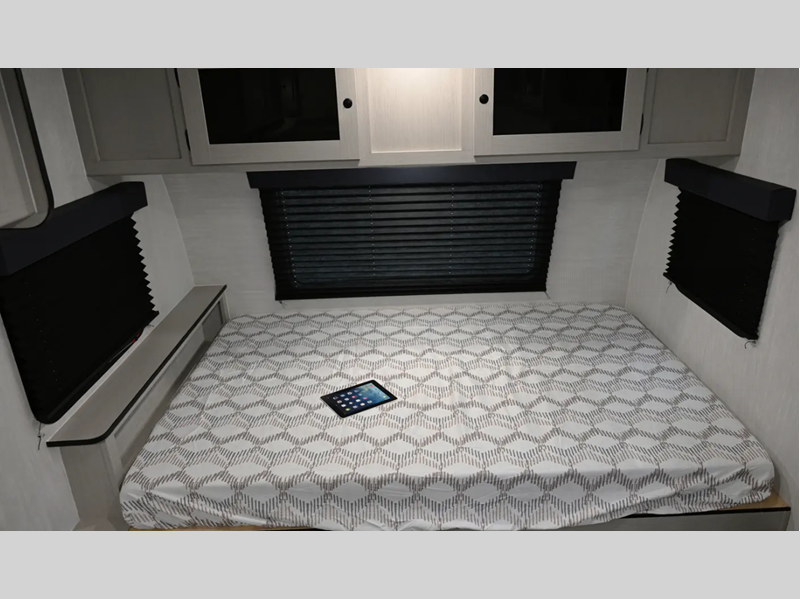Sleeps 5 Slides 1 Length 22 ft 8 in Ext Width 7 ft 6 in Ext Height 9 ft 10 in Hitch Weight 428 lbs GVWR 4800 lbs Dry Weight 3634 lbs Cargo Capacity 1166 lbs Fresh Water Capacity 52 gals Grey Water Capacity 27 gals Black Water Capacity 27 gals Number Of Bunks 2 Available Beds Queen Refrigerator Type 12V Refrigerator Size 8 cu ft Cooktop Burners 2 Number of Awnings 1 LP Tank Capacity 20 lbs Water Heater Type Tankless AC BTU 15000 btu Awning Info 14' Power w/LED Lights Axle Count 1 Number of LP Tanks 2 Shower Type Tub/Shower Combo Electrical Service 55 amp Similar Floorplans