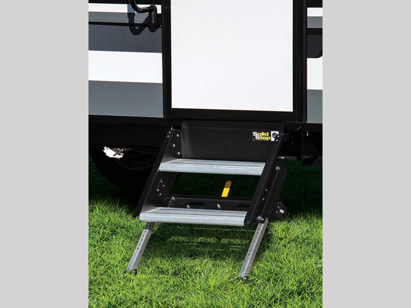 The modern interiors feature Casino Bisque cabinetry and Shaker cabinet door frames, seamless edge countertops and Congoleum residential flooring which are all complimented by the functional use of each space. Each model also includes a full bath and a functional kitchen making your camping adventures comfortable and easy. Outside, you'll find a power tongue jack, Solid Steps, a hot and cold exterior shower, plus many more conveniences. There are also super lube axles for easy towing, and a 200 watt solar panel with a 30 amp control charger for off-grid capabilities!