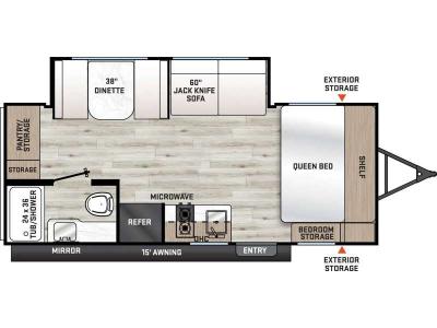 Sleeps 4 Slides 1 Length 23 ft 1 in Ext Width 7 ft 6 in Int Height 6 ft 6 in Hitch Weight 450 lbs GVWR 5550 lbs Dry Weight 4210 lbs Cargo Capacity 1340 lbs Fresh Water Capacity 44 gals Grey Water Capacity 30 gals Black Water Capacity 30 gals Furnace BTU 19000 btu Available Beds Queen Refrigerator Type GE 12V Refrigerator Size 10.7 cu ft Cooktop Burners 2 Shower Size 24" x 36" Number of Awnings 1 LP Tank Capacity 20 lbs Water Heater Capacity 6 gal Water Heater Type Gas/Electric DSI AC BTU 13500 btu Awning Info 15' Electric with Multicolored LED Light Strip Axle Count 2 Number of LP Tanks 1 Shower Type Tub/Shower Combo Electrical Service 30 amp