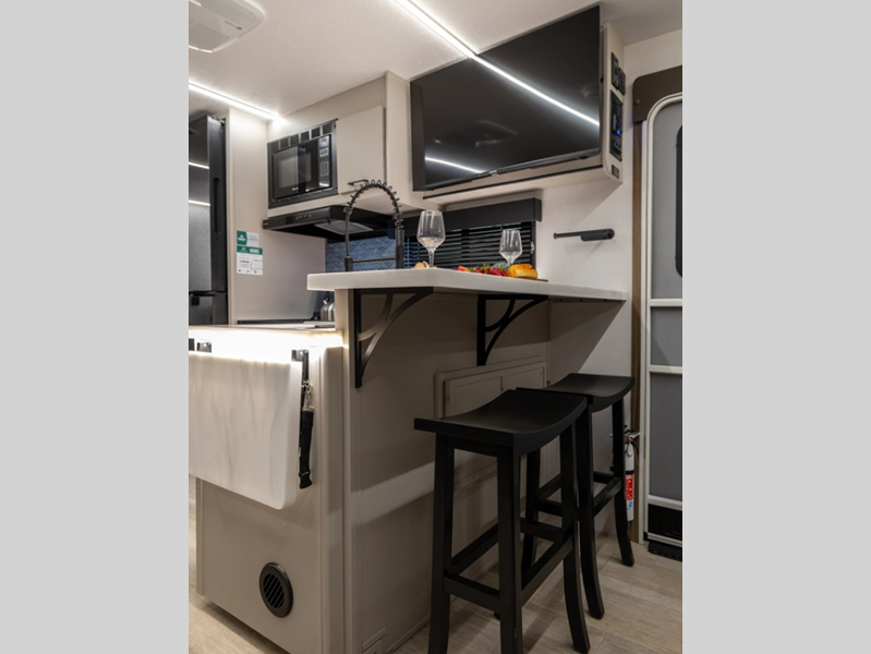 This stunning new brand of travel trailer is designed with premium features and innovative design elements that will make your journeys unforgettable. The Liberty Edition boasts impressive interior space, with a cleverly designed layout and thoughtful touches that make it feel like a home away from home. Flip-up countertop extensions provide extra space for meal prep or work.