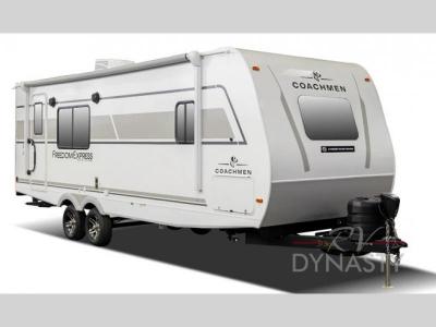 With any Freedom Express Ultra Lite travel trailer by Coachmen you will appreciate quality construction materials, such as vacuum bonded walls with Azdel composite, a 3/4 gel coated fiberglass cap with an automotive glass windshield, and a heated enclosed underbelly. Each model also features Tufflex PVC roofing, front rock guard, and E-Z Lube axles for smooth towing. Inside, you'll find kitchen backsplash, hidden hinge cabinetry, and wear-resistant vinyl flooring throughout. The power tongue jack included with the Ultra Lite Express Package will make set-up a breeze, and each model includes back-up camera prep and they are Freedom solar ready if you plan to go off-grid. Enjoy lightweight camping with a Freedom Express Ultra Lite travel trailer today!