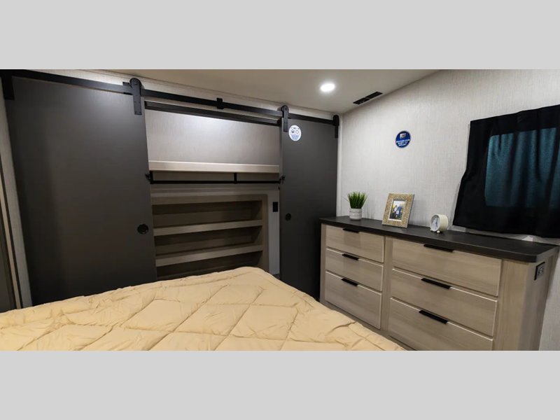Sleeps 5 Slides 4 Length 43 ft 3 in Ext Width 8 ft Ext Height 13 ft 6 in Hitch Weight 2150 lbs GVWR 14908 lbs Dry Weight 12208 lbs Cargo Capacity 2700 lbs Fresh Water Capacity 60 gals Grey Water Capacity 114 gals Black Water Capacity 76 gals Furnace BTU 35000 btu Number Of Bunks 3 Available Beds King Refrigerator Type 12V Refrigerator Size 16 cu ft Number of Awnings 1 LP Tank Capacity 20 lbs Water Heater Type On Demand Tankless AC BTU 18000 btu TV Info LR LED TV Awning Info 19' Power Axle Count 2 Washer/Dryer Available Yes Number of LP Tanks 2 Shower Type Standard Electrical Service 50 amp Similar Floorplans