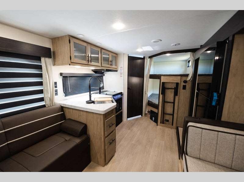 Sleeps 6 Slides 1 Length 24 ft 3 in Ext Width 8 ft Ext Height 10 ft 8 in Hitch Weight 616 lbs GVWR 7616 lbs Dry Weight 5076 lbs Cargo Capacity 2540 lbs Fresh Water Capacity 52 gals Grey Water Capacity 38 gals Black Water Capacity 38 gals Number Of Bunks 1 Available Beds Two Queen Number of Awnings 1 Awning Info 15' Axle Count 2 Shower Type Tub/Shower Combo Similar Floorplans