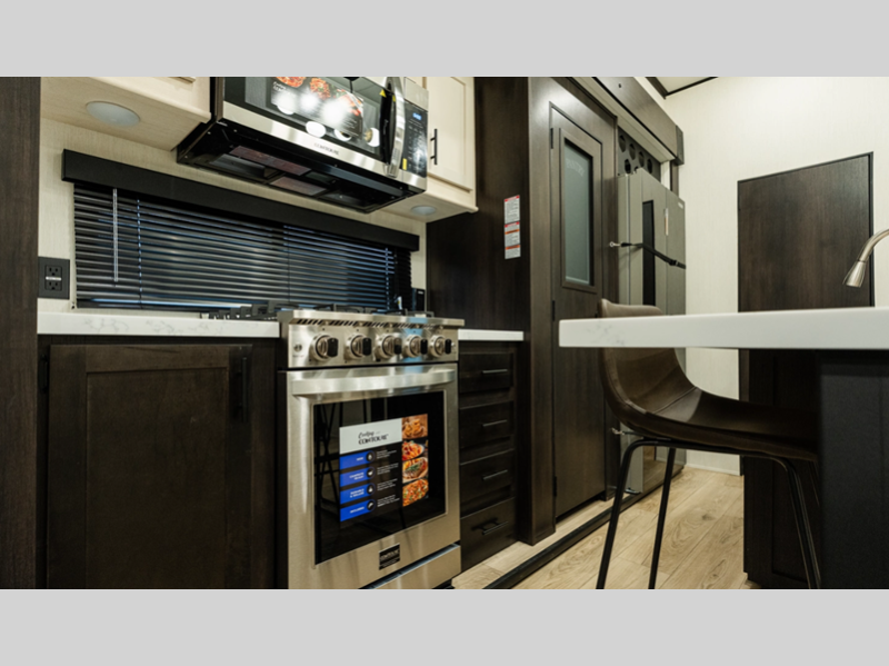The versatile rear garage features a fully insulated rear wall, transforming this space from a garage for toys to an additional bedroom or living space! Like with all Forest River products, you'll appreciate a solid built RV for lasting strength. There are full bath and kitchen amenities, cozy bedrooms, and generous storage spaces for your personal belongings, camp gear and more.