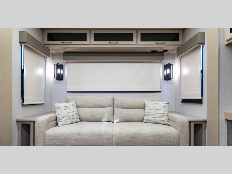Sleeps 4 Slides 5 Ext Width 8 ft 5 in Int Height 7 ft Exterior Color Full Body Paint Pearl White and Black (required with paint option) Tire Size 16" Furnace BTU 35000 btu Available Beds King Refrigerator Type Stainless Steel 12V Refrigerator Size 18 cu ft Cooktop Burners 4 Shower Size 48" x 30" Number of Awnings 2 Axle Weight 8000 lbs LP Tank Capacity 30 lbs Water Heater Capacity 12 gal AC BTU 45000 btu TV Info LR 50" Smart TV, BR Smart TV Awning Info 18' and 19' Power w/LED Lighting Axle Count 2 Washer/Dryer Available Yes Number of LP Tanks 2 Shower Type Standard Solar Wattage 260 watts Similar Floorplans