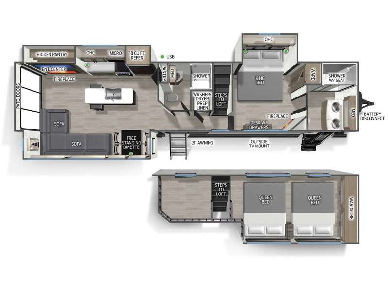RV Dynasty is not responsible for any misprints, typos, or errors found in our website pages. All percent off numbers are rounded to the nearest percent. Any price listed excludes sales tax, registration tags, and delivery fees. Payments are estimates based on 10% down and 7.99% APR for qualified buyers based on 120 month to 240 month terms based on amount financed. Manufacturer pictures, specifications, and features may be used in place of actual units on our lot. Please contact us @765-689-8815 for availability as our inventory changes rapidly. All calculated payments are an estimate only and do not constitute a commitment that financing or a specific interest rate or term is available.